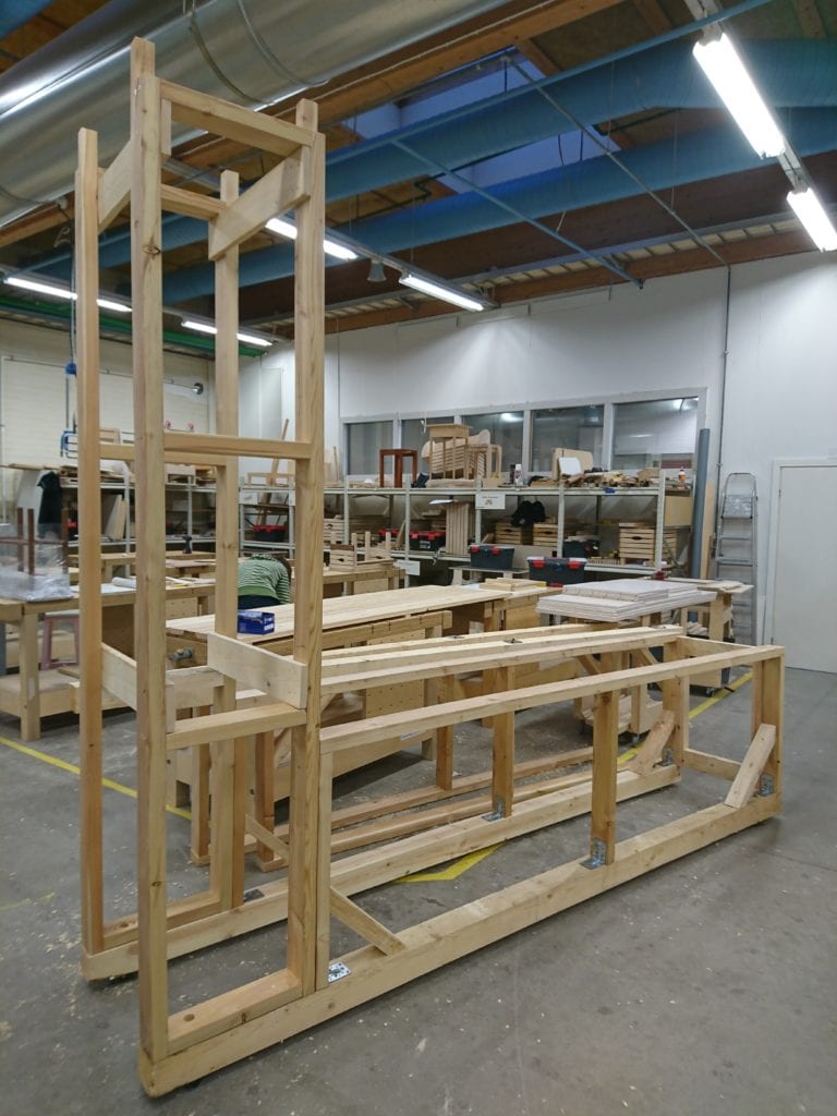 Tein itse katkaisuluettelon viimevuoden piirustuksien mukaan. Kävin piirustukset ja listan läpi Salpauksen puuseppäopiskelijoiden kanssa. Tilasin tavarat Puumerkiltä Salpaukseen ja siitä puuseppäopiskelijat alkoivat valmistamaan portin osia. Kävin itse kasaamassa runko palat valmiiksi ja samalla neuvoin tai autoin opiskelijoita työssä.
